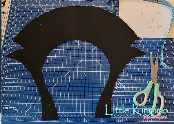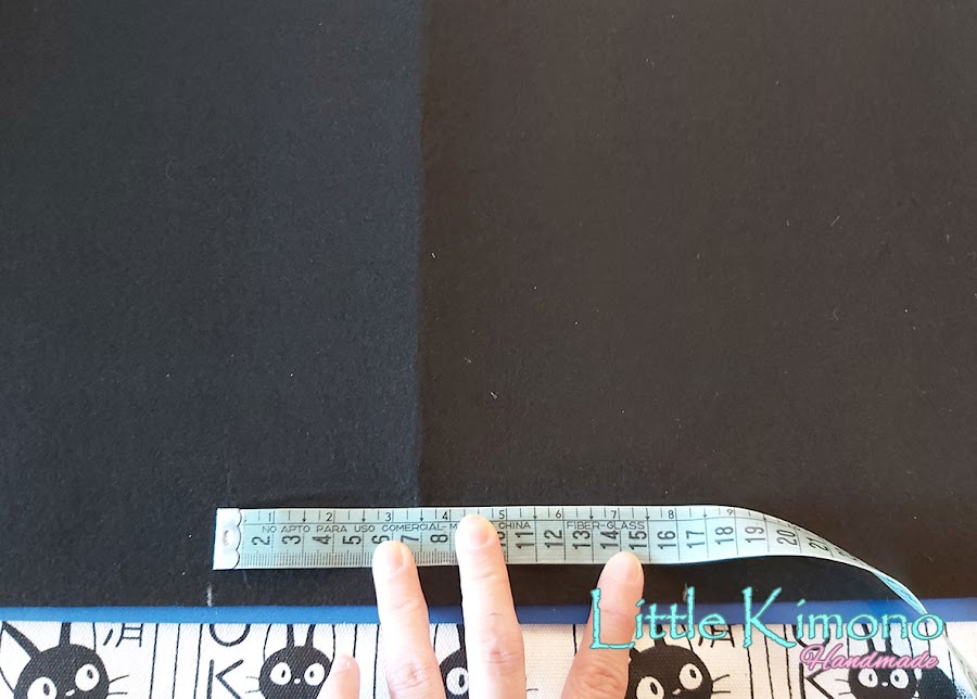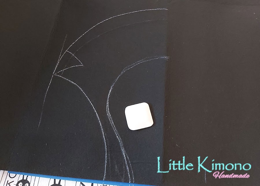 Con dibujar un lado y doblar el fieltro por la mitad ya podemos cortar y nos quedará simétrico. Cortamos 2 piezas iguales.