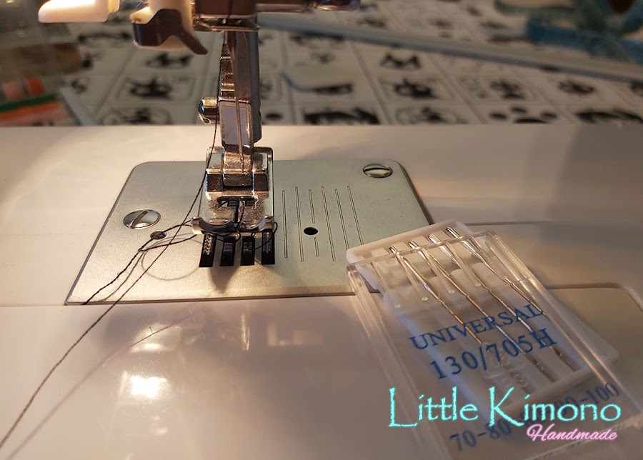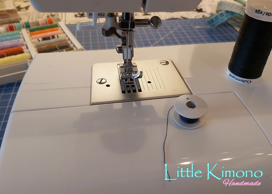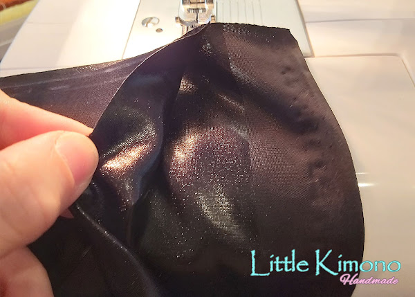 3. Doblamos la tela por la mitad y cosemos con un hilo en la misma tonalidad y como la tela es finita he usado una aguja del 70.