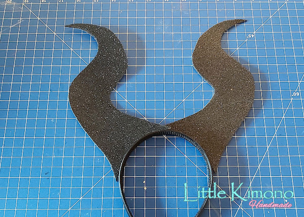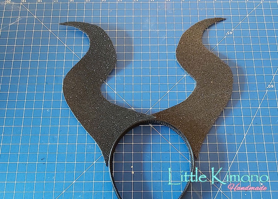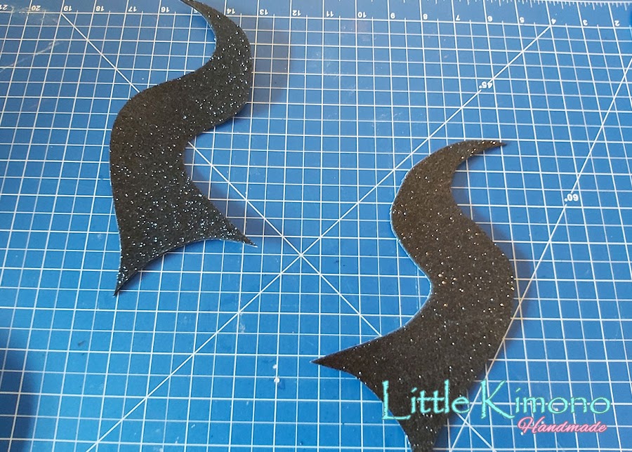El complemento final, para esto usamos una diadema negra y Goma Eva Glitter Negra.