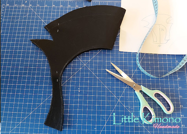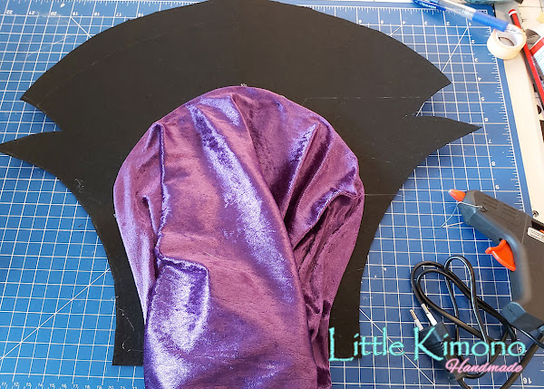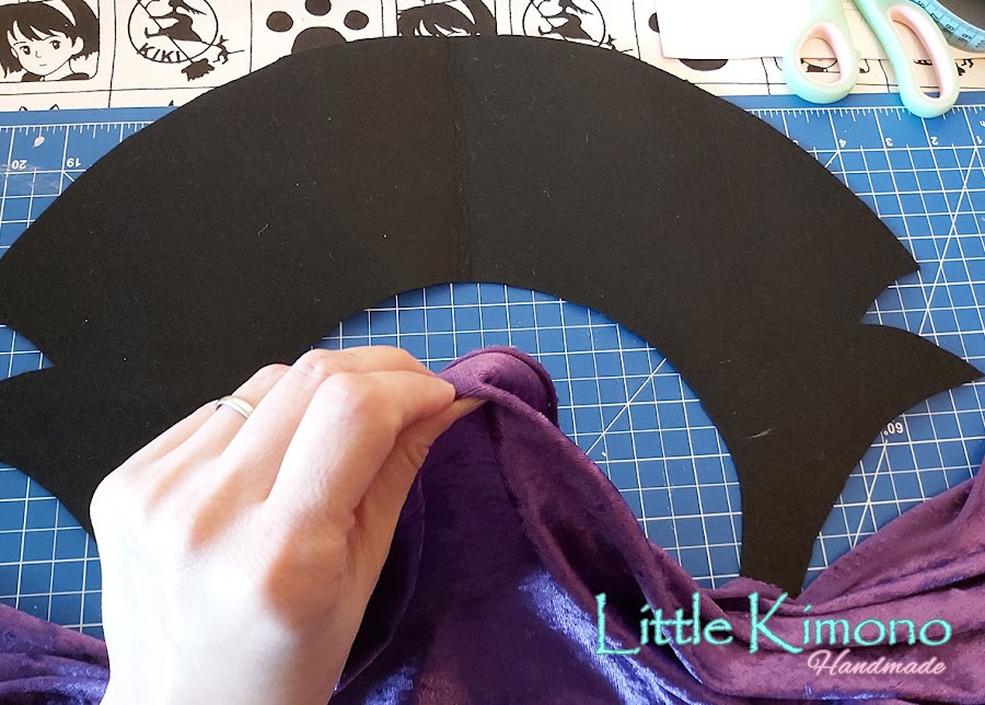 3. Luego pegamos la otra pieza de fieltro encima de la anterior, esto es para que tenga doble cuello, uno lo levantaremos y el otro cubrirá la capa, podéis ver el efecto final en las fotos de abajo ;)
