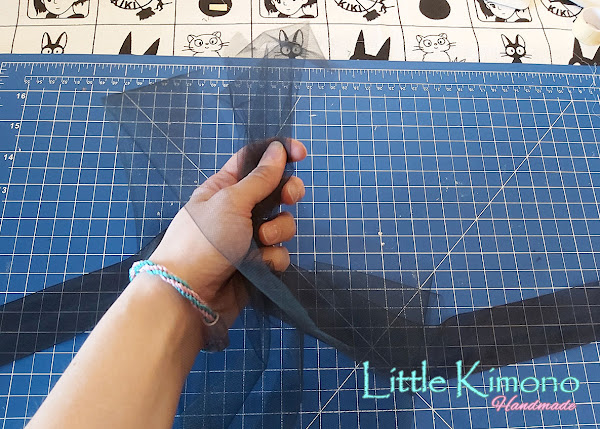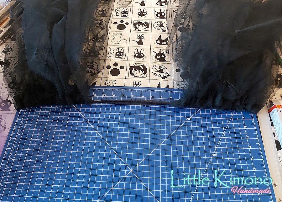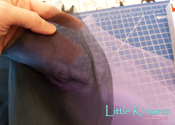 Para esta pieza usaremos el tul negro y morado.