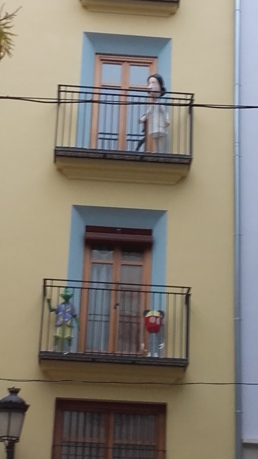 Vimos también figuras que adornaban balcones, y una fachada pintada de forma muy original.