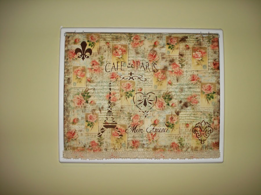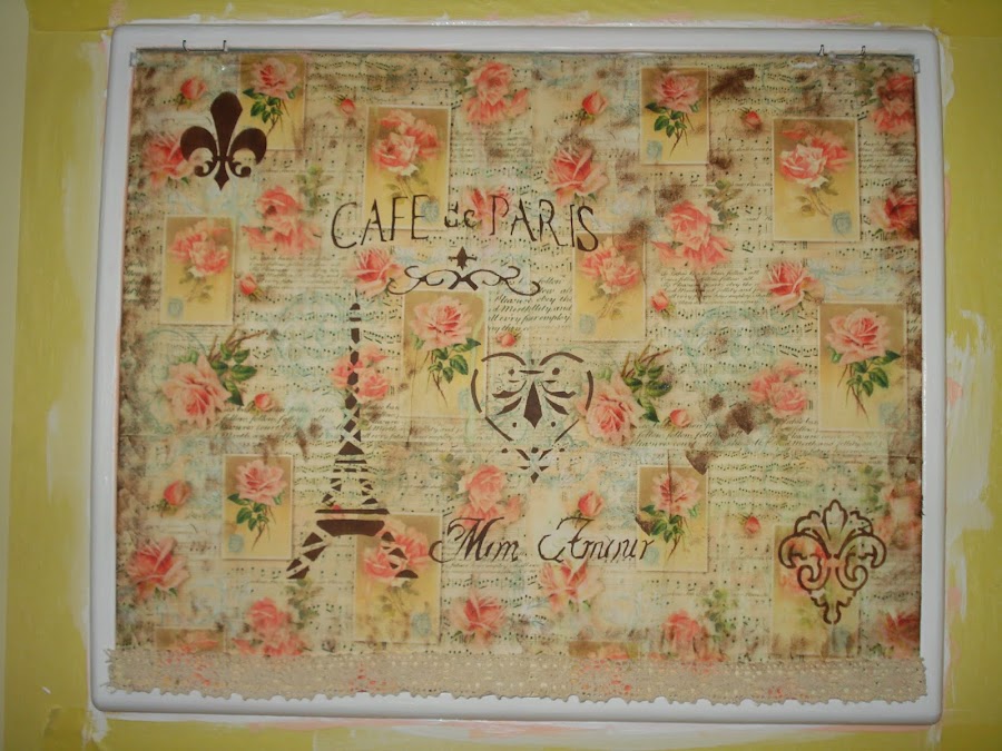 Con esta lámina del blog mi baúl del decoupage, una plantilla para estarcir algún detalle y una puntilla...