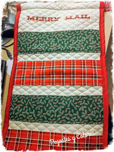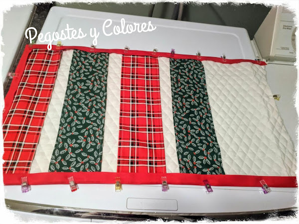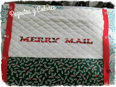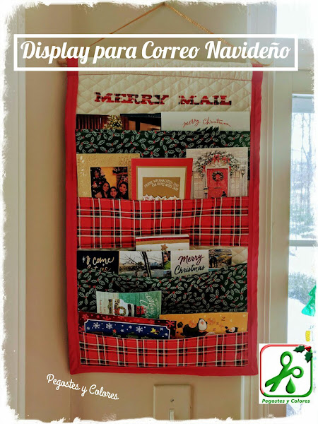 Me encanta que ahora tienen un lugar especial para lucirlas, ¿te gusta la idea? Es muy fácil de hacer y solo se requieren retazos de telas de navidad. Para mi se me facilitaron las cosas porque el cuerpo del estandarte lo hice con una tela acolchada color beige de dos vistas, así que ya no necesite poner un refuerzo y forro por detrás. Solo cosí tiras de retazos de telas navideñas formando bolsillos para poder poner ahí las tarjetas. Agregue una cinta de bies alrededor, unas letras de tela con papel adhesivo de activación con plancha permanente, coser arriba dejando un espacio para poder insertar un palo de madera y ponerle una cinta dorada que lo sujete... ¡Listo!