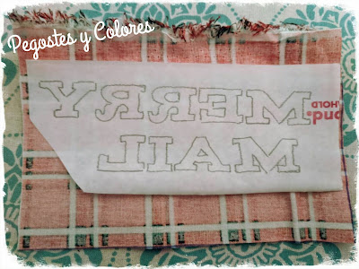 Este tipo de papel tiene dos lados diferentes, uno con pegamento y otro con una protección de papel. Dibuja o calca las letras en forma de espejo, o sea al revés por la parte de protección de papel y colócalo sobre el revés de la tela, como en la foto. Plancha a temperatura media sin vapor siguiendo las instrucciones de la marca que consigas.