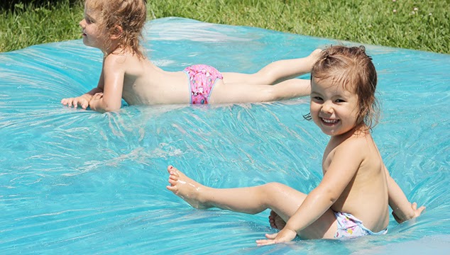 Se puede añadir colorantes alimenticios al agua para conseguir efectos como el de la fotografía. Ademas de un poco de agua sobre la colchoneta para que los niños chapoteen.