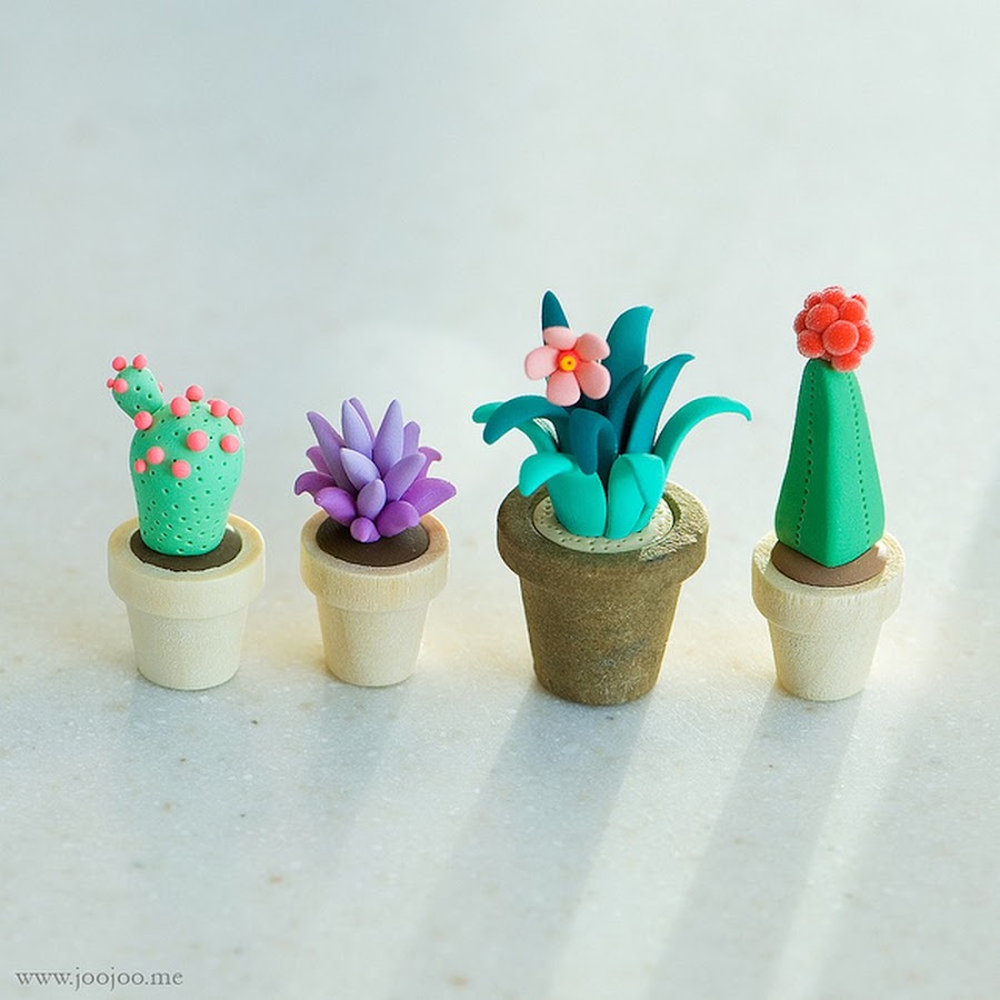 Con arcilla polimérica también puedes hacer cactus y mira que belleza de resultado, en Joojoo.me