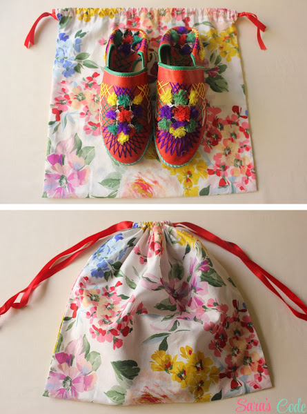 Esta bolsita de tela queda genial para guardar zapatos pero también carteras, regalos o la merienda de los niños. Podéis ver el tutorial completo en este post.
