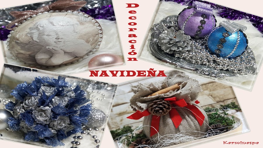 Hola, hoy te traigo 4 formas diferentes de hacer o decorar esferas o bolas navideñas. Es un trabajo muy sencillo y se pueden hacer infinidad de decoraciones, en esta entrega te traigo las cuatro que de algún modo me han llamado más la atención, pero de buena gana habría hecho muchísimas mas...jajjaja... Pero a las alturas que estamos, creo que ya el resto de ideas se quedarán para el año que viene...jajaj... No obstante, yo te dejo estas ideas y de ellas tu puedes sacar muchísimas más, por lo tanto, ¡Manos a la obra...! que seguro que vas a hacer unas bolitas estupendas.