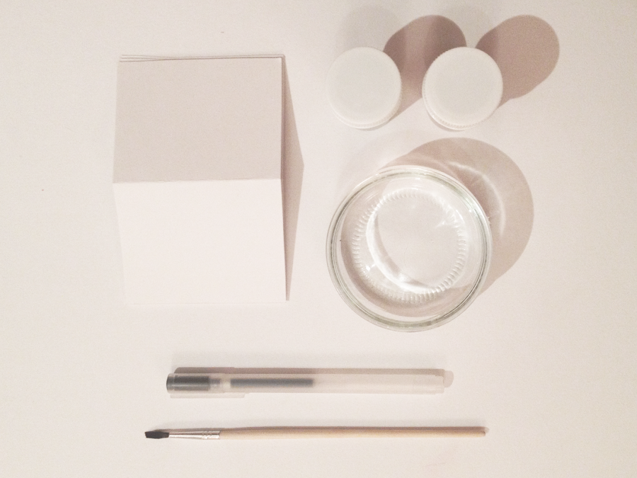Lo que vamos a necesitar es: cartulinas blancas, bolígrafo (si puede ser para caligrafía, mejor, aunque el mío no lo es), acuarelas y agua (o las pinturas que tengamos por casa) y pincel.Las cartulinas las tenemos que cortar del tamaño que queramos (yo hice más o menos 10 x 15 cm) y doblarlas a la mitad para que se sostengan sobre la mesa.