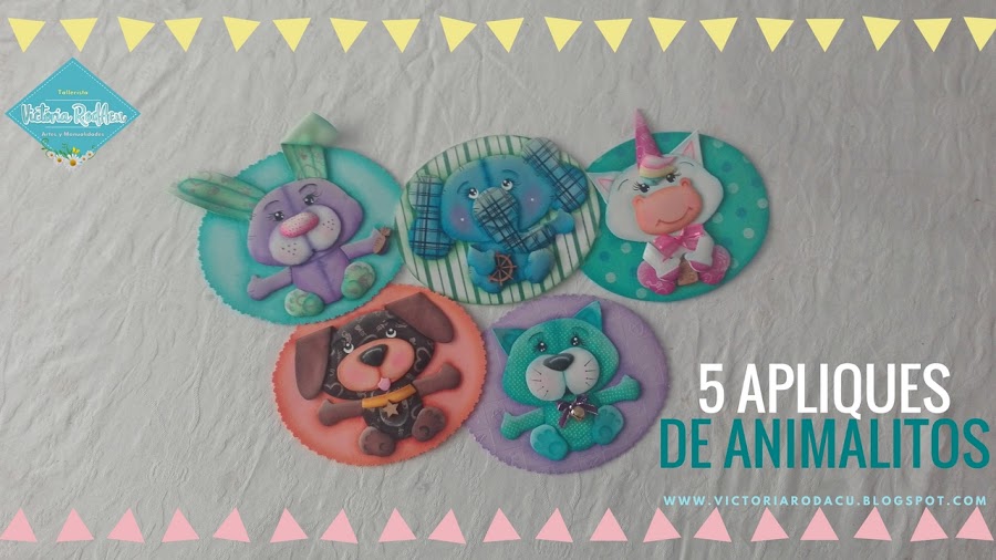 Con Anamá hicimos estos 5 apliques de animalitos estilo muñecos de trapo. Fue todo un reto diseñarlos y más porque el objetivo era que a partir de un mismo molde pudiéramos hacer varios diseños.