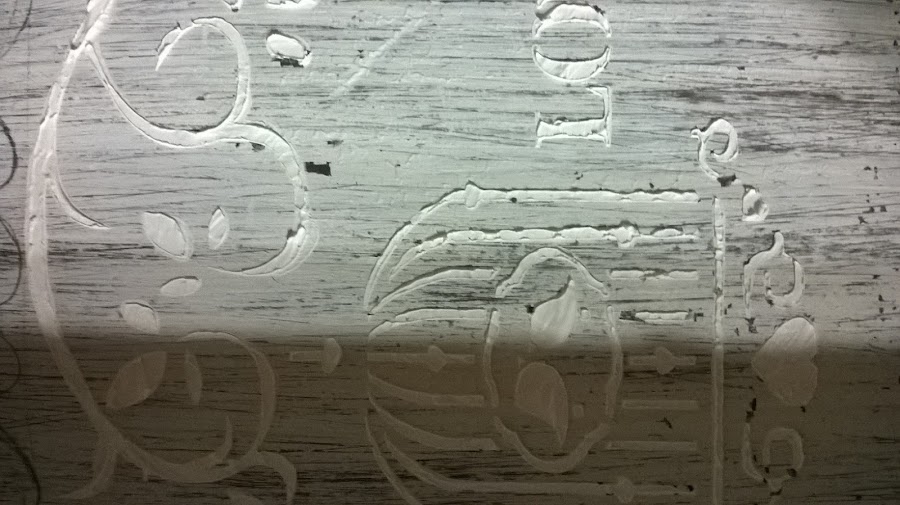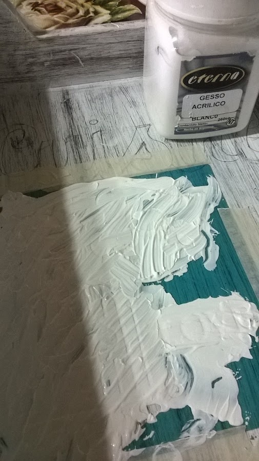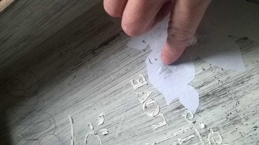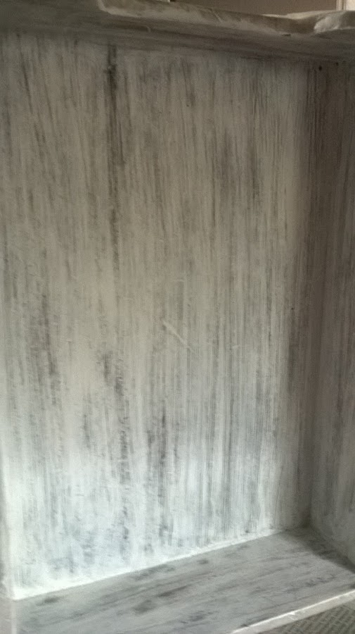 Pinté de blanco y una vez seco lijé para darle un aspecto desgastado, quise que todo el trabajo tuviera ese aspecto, y así fue quedando...