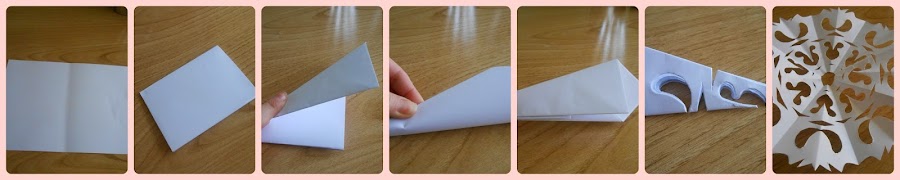 Cogemos un folio y lo doblamos dos veces por la mitad; la parte resultante la volvemos a doblar y ahora doblamos hasta tres veces pero en diagonal. El resultado será un cono aplastado, del que quitaremos la parte sobrante de arriba y a continuación recortaremos.