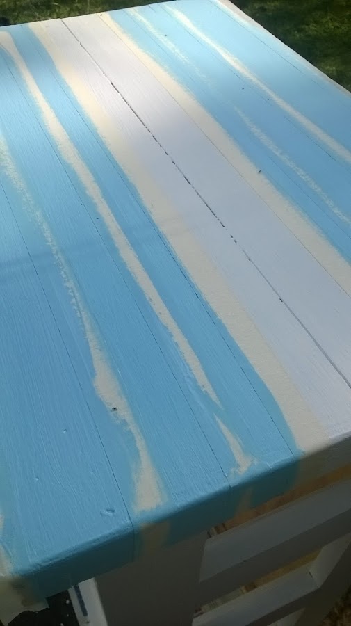 Sobre la tapa le hice una transferencia sobre las rayas celestes.
