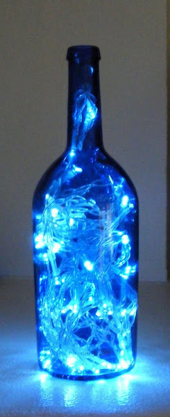 Otra idea que me parece super chula es esta botella, tambien cortada, convertida en lampara de techo y que para darle un toque super chic la han decorado con piedras de cristal. el paso a paso de este DIY, hecho por Allison Murray, lo puedes encontrar en