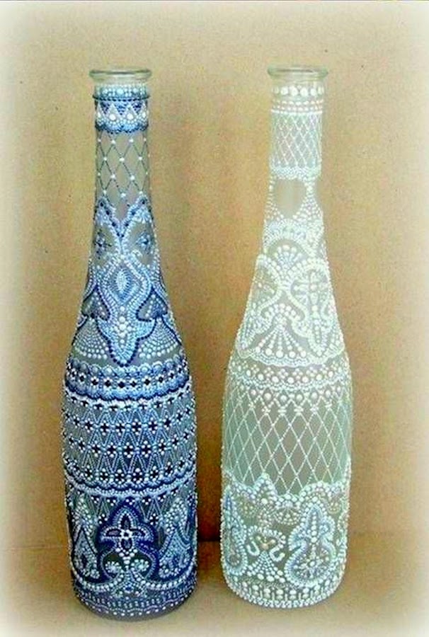 He aquí otra idea de botellas decoradas como verdaderas obras de artes, se nota muchísimo que se ha puesto dedicación y mimo en estos trabajos que pudes ver en