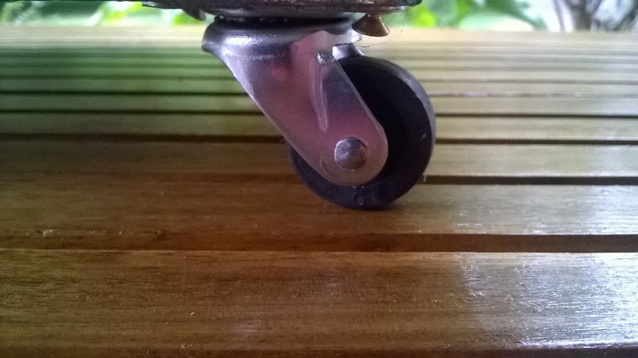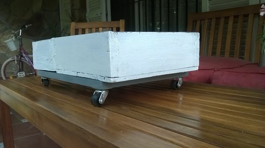 Los coloqué sobre una madera de MDF, que también pinté de gris, y atornillé las cuatro ruedas.