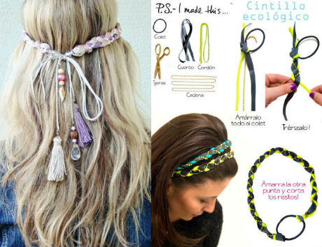 5.Con cordones, cintas y borlas puedes lograr increíbles accesorios para tu pelo.