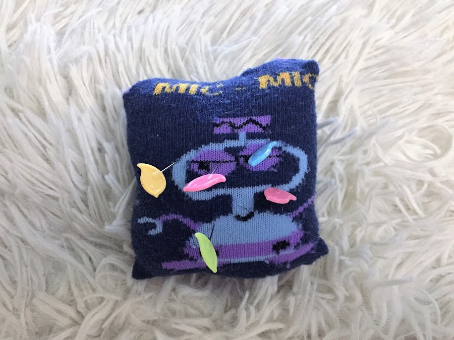 Cuando lo vi en la revista the sewing box mag no me podía creer que algo tan simple pudiera quedar tan bien, aquí os dejo la prueba, este es mi acerico de un calcetín.