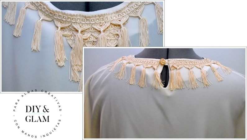 Actualizar ropa desfasada me pone un montón. Una blusa de señora convertida en una prenda muy chic. Ya ves, con una simple tira de flecos se puede actualizar en muy poco tiempo.