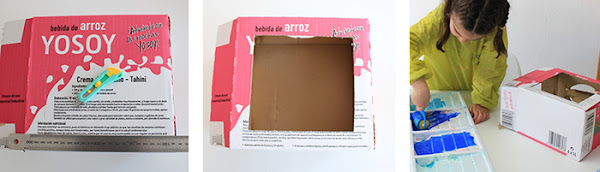 1. Corta un recuadro en uno de los laterales de la caja a modo de ventana.