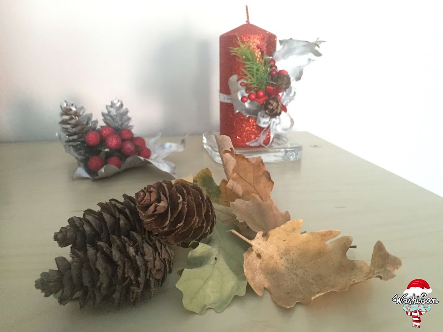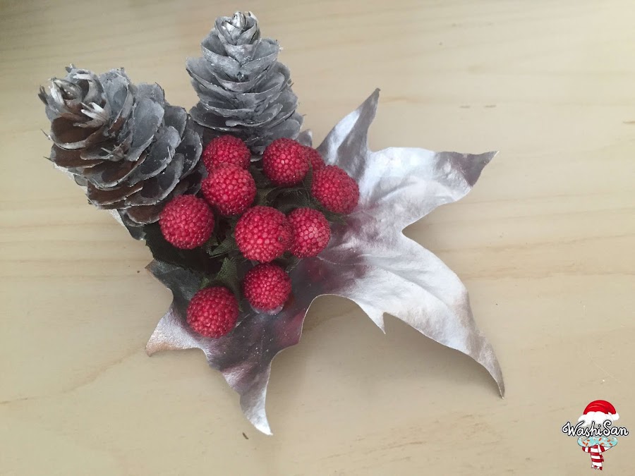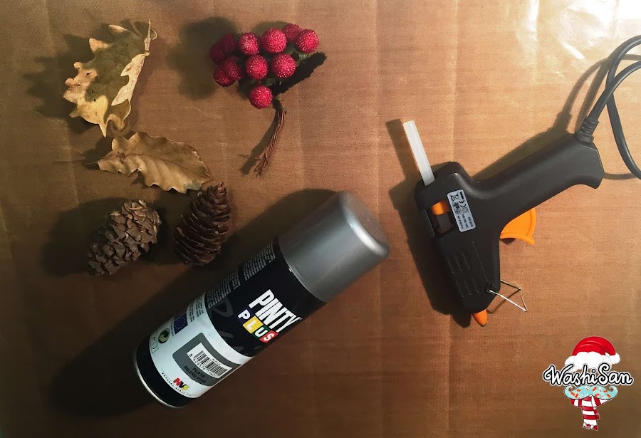 Os traigo un tutorial paso a paso muy sencillo, para confeccionar unos adornos navideños en color plata y rojo, utilizando piñas y hojas secas recogidas del bosque.