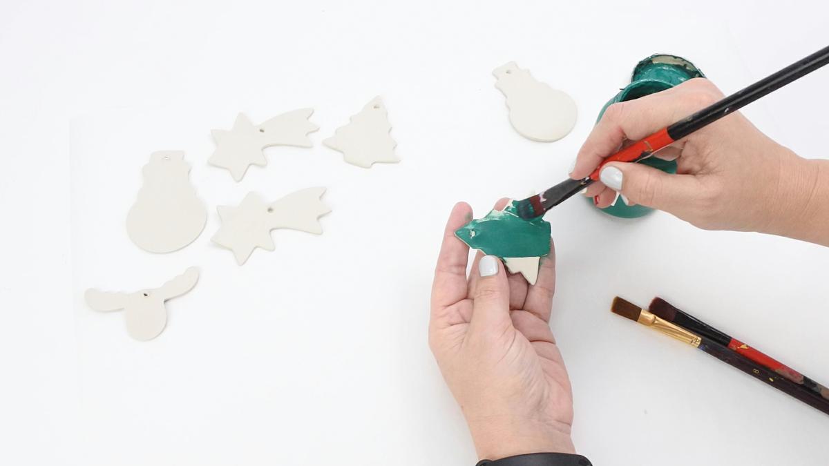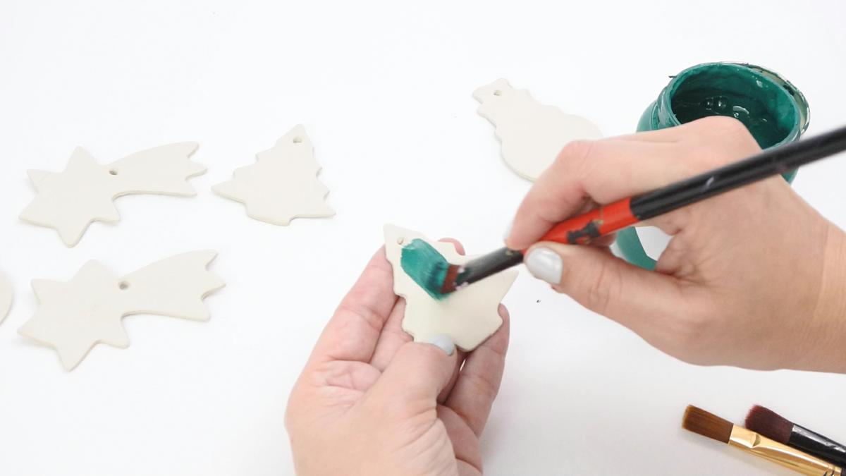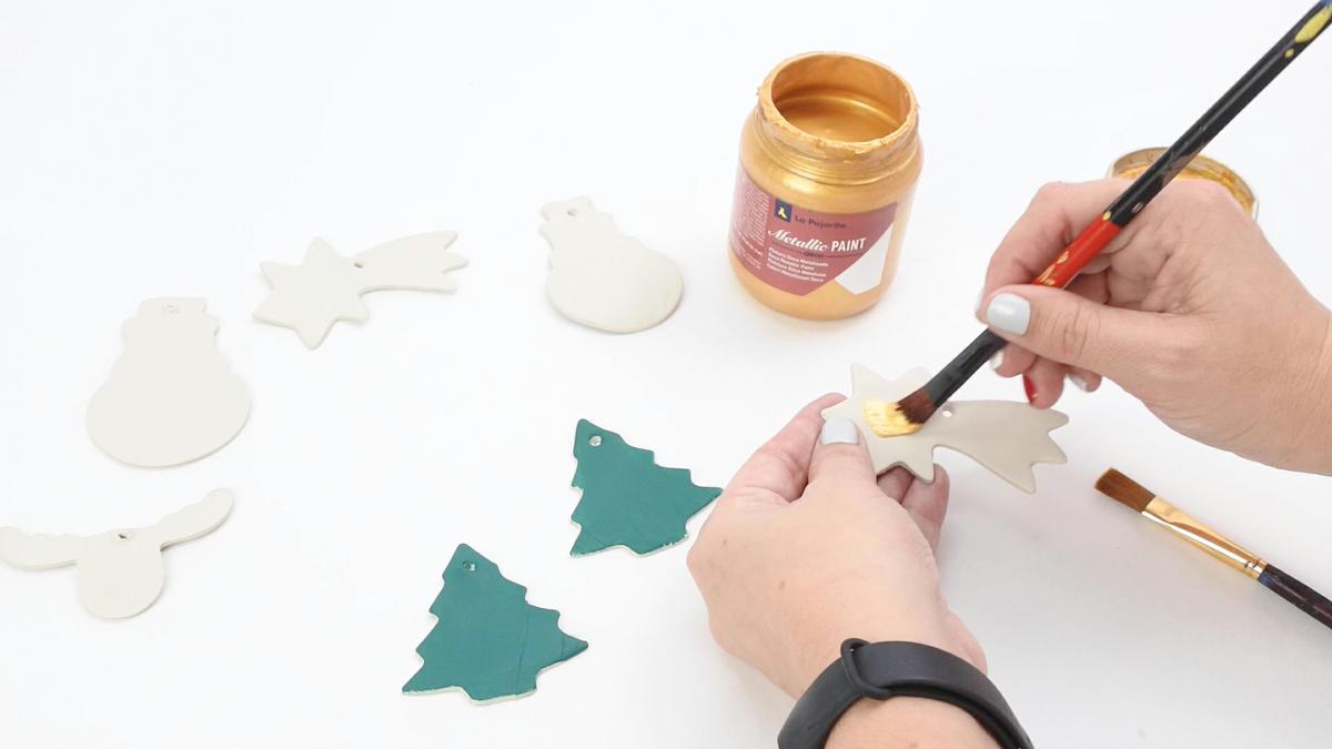 Una vez está la pasta seca, podemos comenzar a pintar y decorar nuestros adornos navideños al gusto.