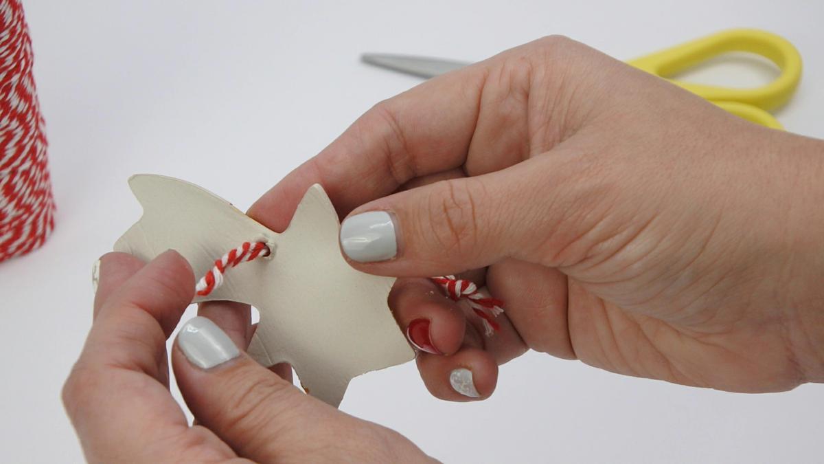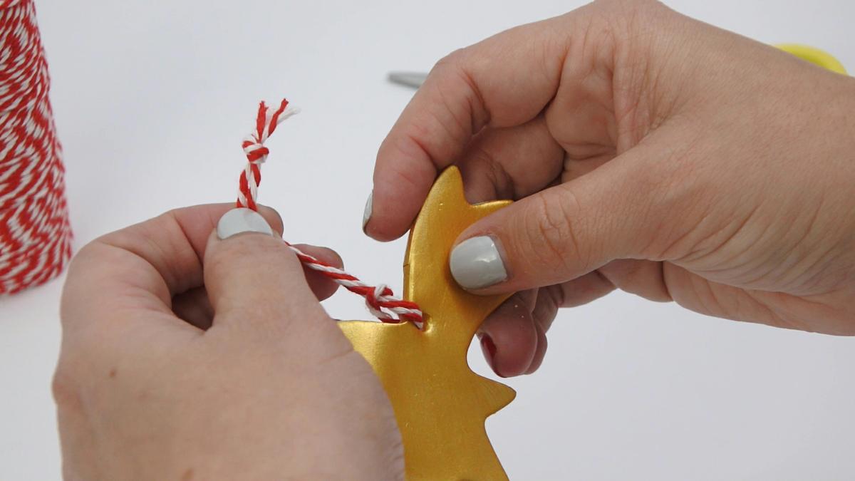 Con la pintura ya seca, tan solo nos queda añadirles el cordón para poder colgarlos.