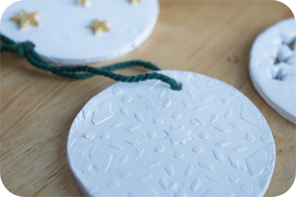 Ya te explique hace unas semanas como se hacía la pasta de sal, así que pásate por el post para verlo. Y para hacer estos adornos es fácil, una vez tengas la pasta de sal preparada simplemente estírala con un rodillo dejándola de aproximadamente 3mm de grosor y con un cortador vete recortando los círculos.