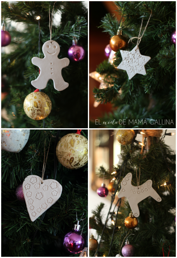 En mi casa la tradición es que en el puente de la Inmaculada empezamos con la decoración navideña. Cuando lo niños eran pequeños íbamos al monte a coger piñas, muérdago y ramas de pino para adornar la casa. Ahora que se han hecho grandes, ya no les interesa tanto este asunto, así que este año estoy haciendo las cosas un poco a mi manera, optando por algo más nórdico y sencillo.Hace años que por estas fechas me gusta hacer los adornos del árbol con pasta de sal, ya sea normal o "galleta de jengibre" , pero con la humedad que hay aquí no me duran de un año para otro. He estado probando con otras pastas caseras con diferentes ingredientes, pero han sido todas un fracaso total. Ya estaba empezando a desesperarme, cuando encontré la pasta de modelar blanca y decidí probar a ver que tal.
