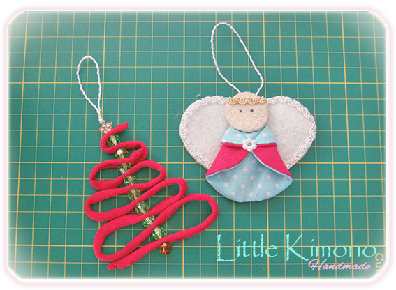 He hecho 2 figuritas para colgar: un angelito y un abeto navideño...