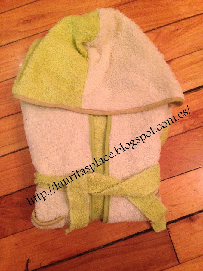 Y como los tiempo van cambiando y con estos las necesidades, mi peque necesitaba un albornoz para la piscina, así que decidí reciclar dos toallas de bebé con capucha y darles una nueva vida en forma de albornoz.