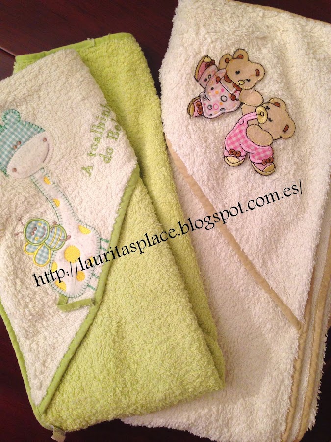 Ordenando los armarios y sacando esa ropa que ya no sirve porque al pequeñín le queda pequeña, me dí cuenta que tenía unas cuantas toallas de bebé con capucha y que hacía ya bastante tiempo que ya no las utilizaba ya que verdaderamente son muy monas pero a partir de los 6 meses ya prácticamente no se usan a no ser que tu bebé sea muy chiquitito, además no nos engañemos, no hay nada mejor que esa super toalla tipo sábana que no se escapa ni una gota de agua ni ná!