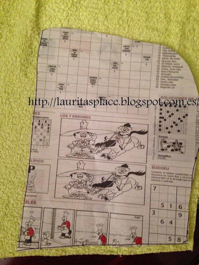 He sacado los patrones más o menos por una batita de estar en casa pero añadiendo unos centímetros más. Como es una toalla no hace falta que sean unos patrones super perfectos, simplemente con que calcular bien el largo del albornoz y de la manga es suficiente. También se puede utilizar para copiar los patrones un abrigo o una chaqueta amplia. Ya sabéis que si al pequeño le queda grande el albornoz no pasa nada en dos días le quedará en su talla.