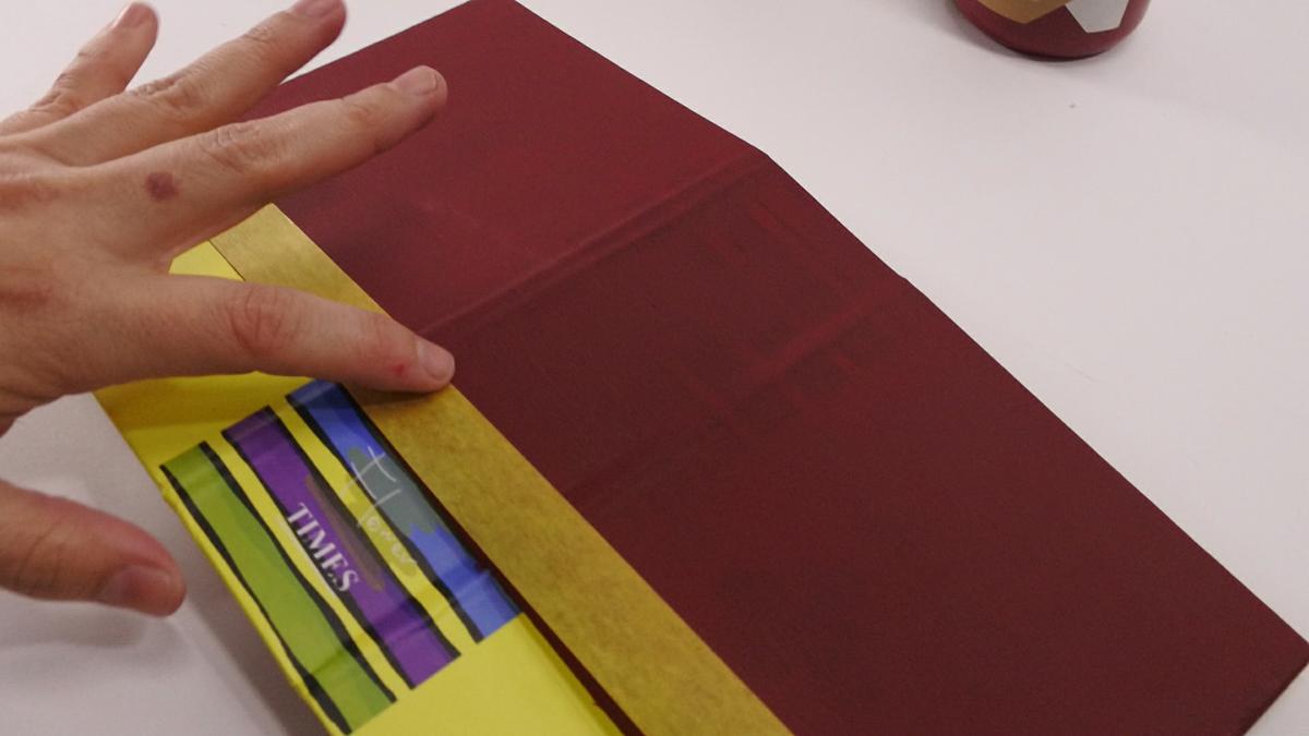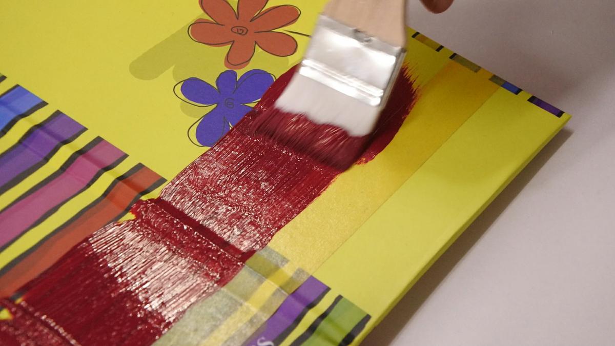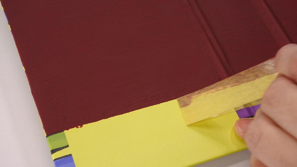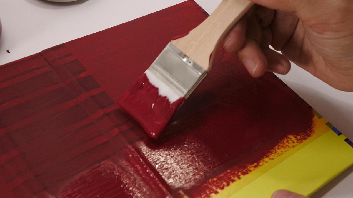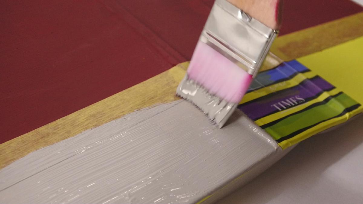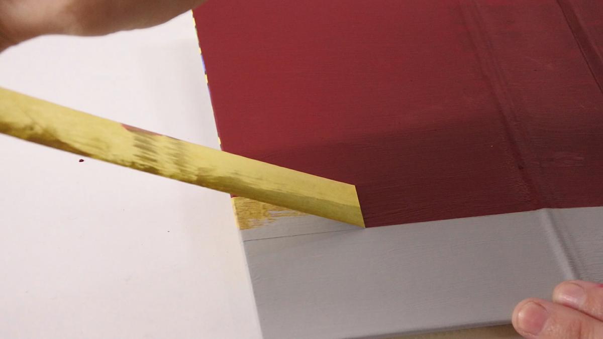 Con la cinta de papel dividimos las zonas que queremos pintar con uno y otro color y comenzamos. Nosotros hemos pintado casi todo con Indie Red, excepto una franja inferior en French grey.