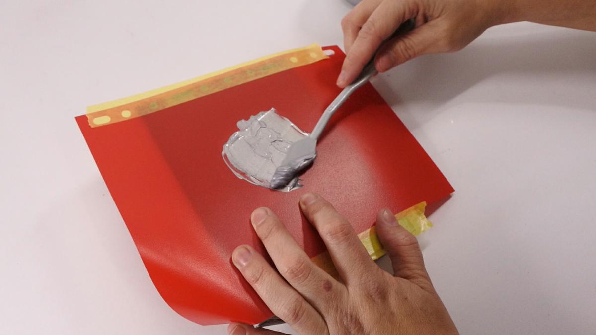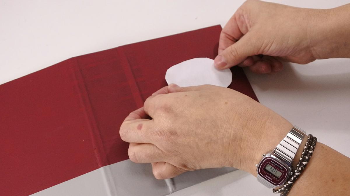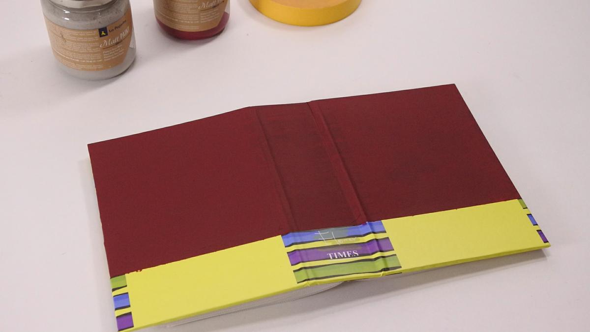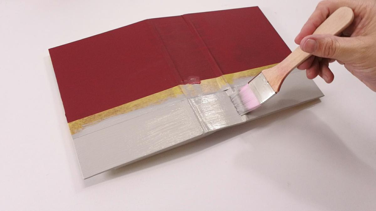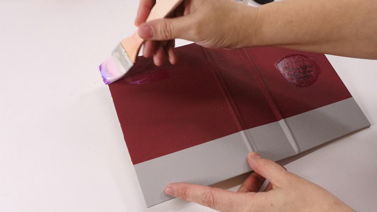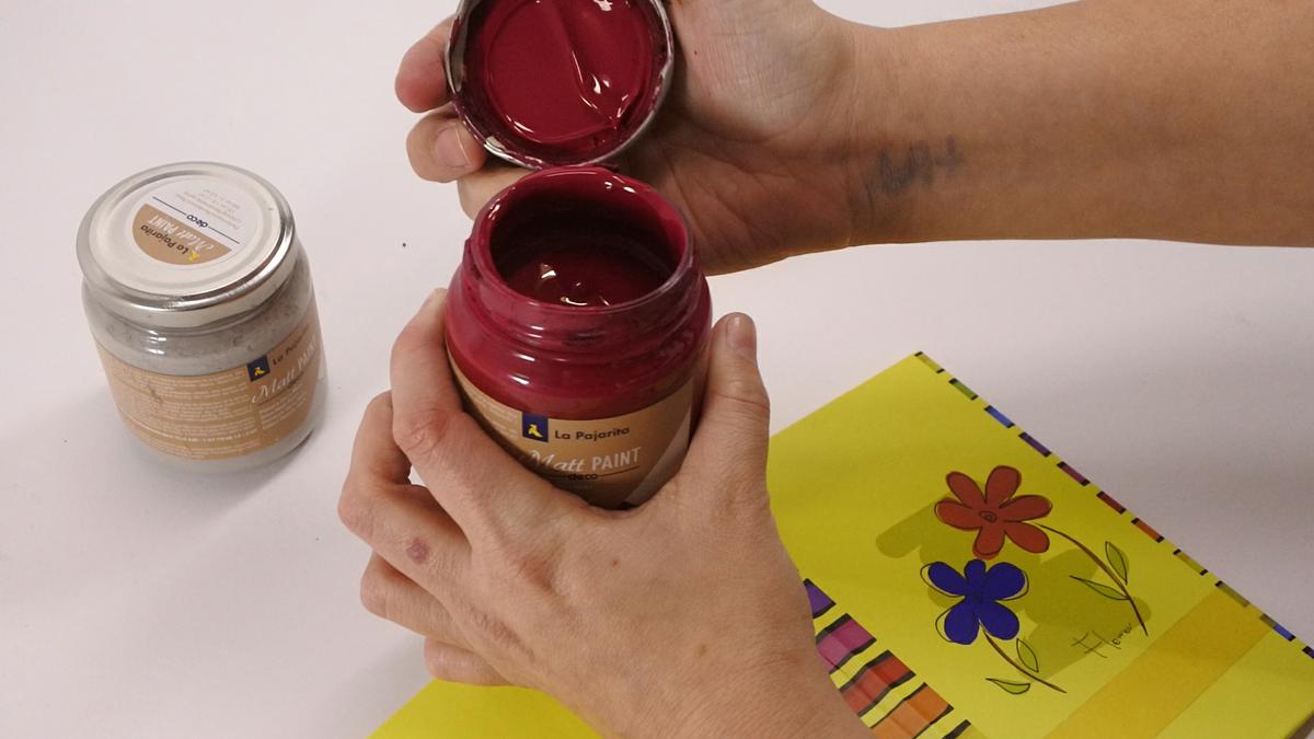 Para comenzar, pintamos el álbum con la pintura Matt. En este caso nosotros hemos elegido dos colores: Indie red y French grey.