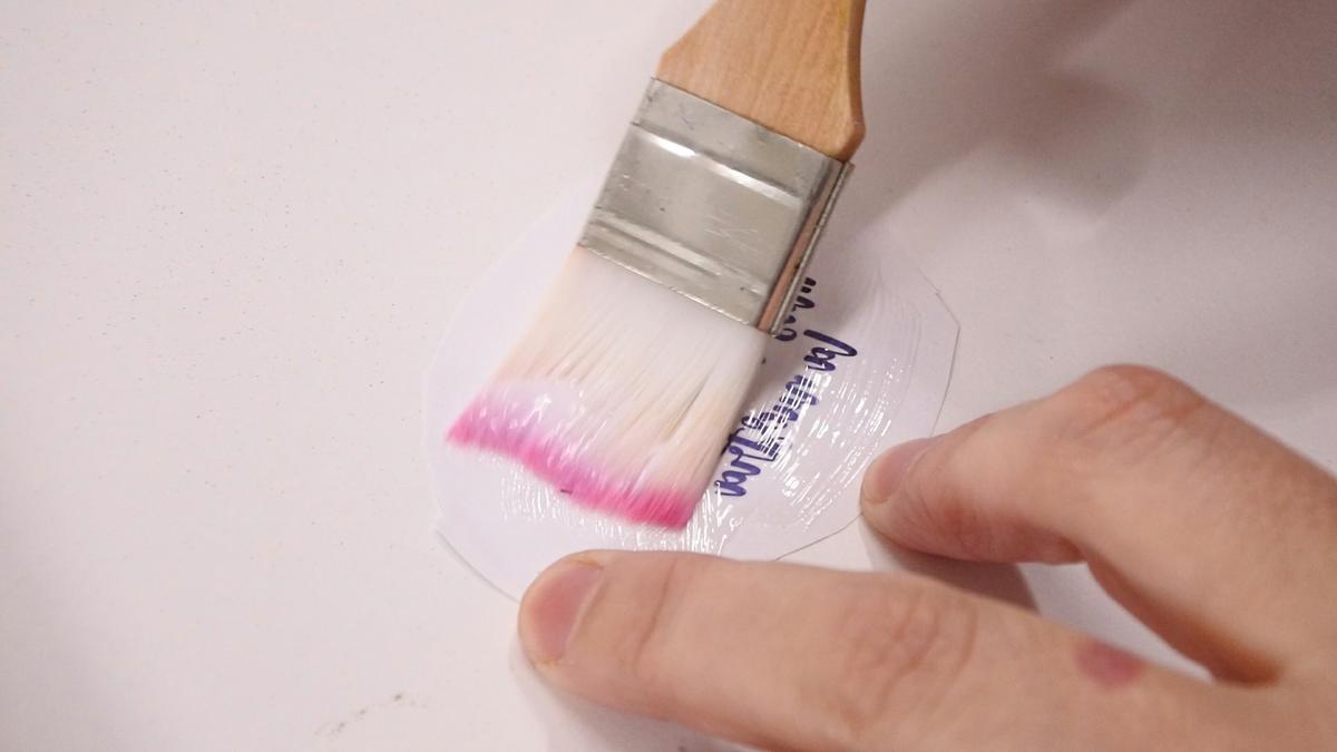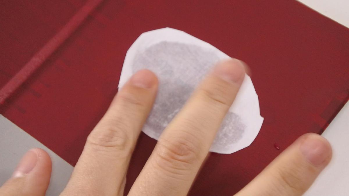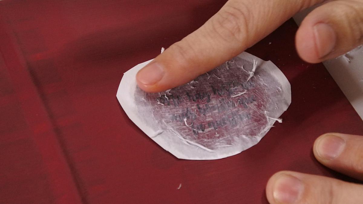 Cuando veamos que la cola está seca, comenzamos a humedecer para retirar el papel y así poder retirarlo y que nos quede el transfer.