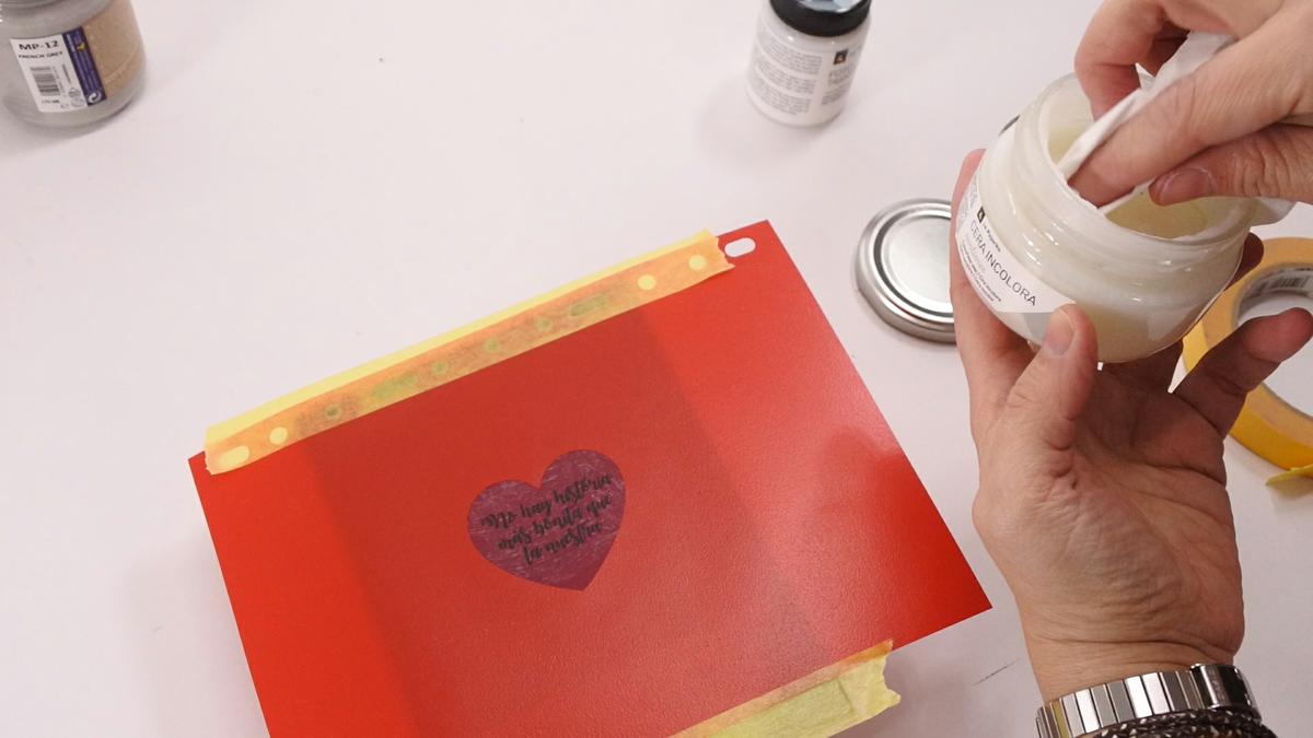 Como el álbum es algo que va a tener bastante roce, vamos a proteger nuestra frase. Para ello damos una pequeña capa de cola para fototransfer sobre la imagen y dejamos secar.