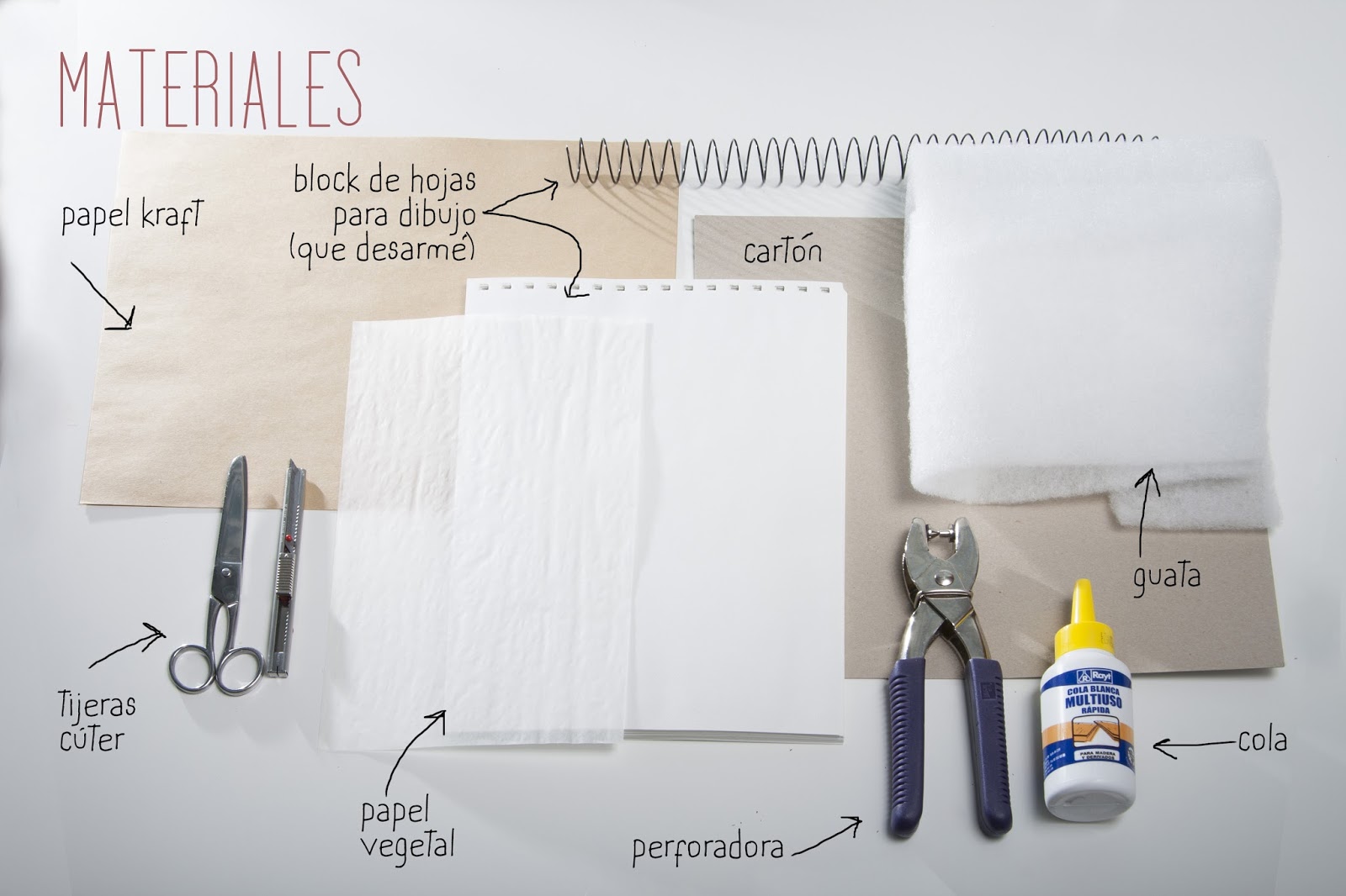 Yo he comprado un block de hojas para dibujo, que ya venía anillado. Sólo tuve que hacer las nuevas tapas, perforarlas y volver a anillar.