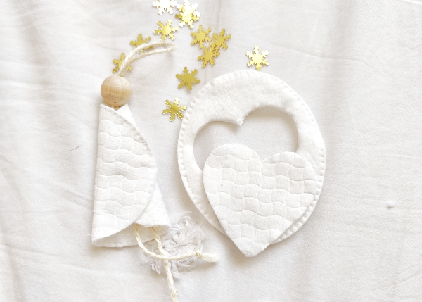 Recortamos el corazón y lo pegamos por detrás del ángel. En mi caso, le he añadido una estrellita dorada y ¡listo!