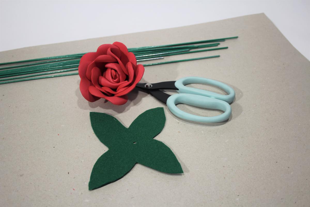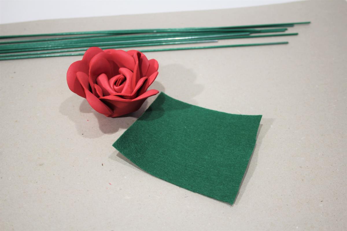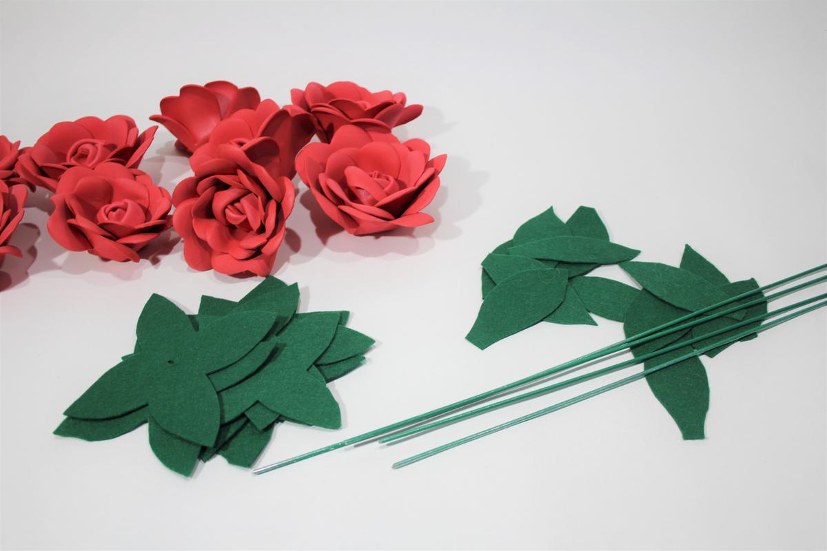Fieltro de color verde para las hojas y la parte inferior de las rosas.