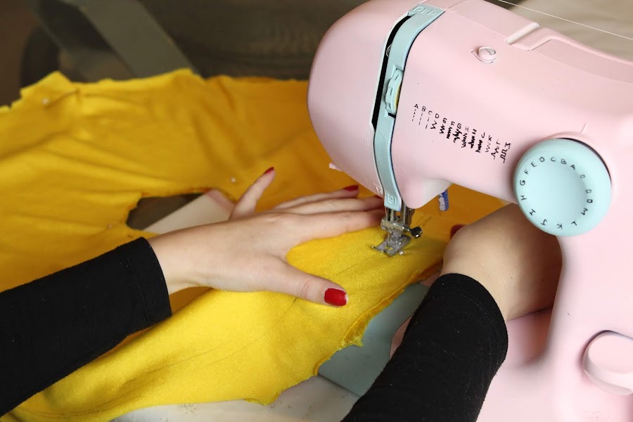 4 PASO: Coser a máquina un tubo para forrar el churro de piscina.