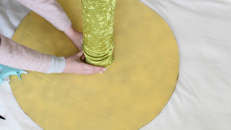 5 PASO: Cortar una circunferencia de Cartón de Radio 35 cm. Pegar en el centro el Churro de piscina con Silicona.