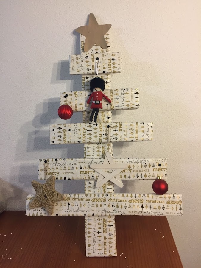Consideré que el material que me enviaban no era ni el más adecuado para ello ni el suficiente para que todos los amigos pudiéramos participar, por lo que decidí tener más creatividad e inventarme un taller con ellos. Así que realizamos un árbol de Navidad.