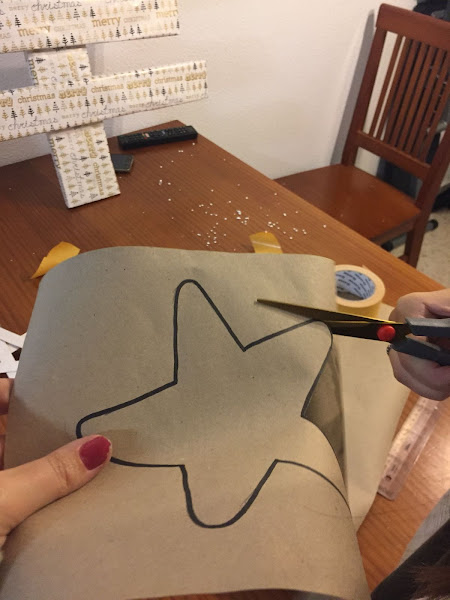 Posteriormente, realizamos una estrella con otro papel que nos guste. En mi caso he reciclado el papel craft que venía dentro del rollo de papel de regalo.