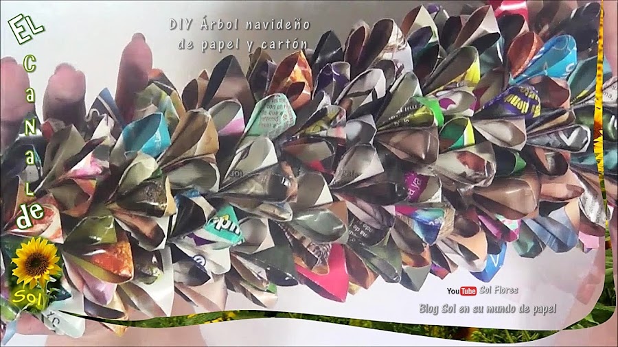 Para este precioso árbol, seguimos reciclando cartón y papel de revista.