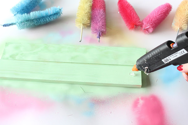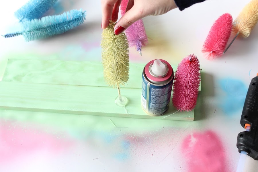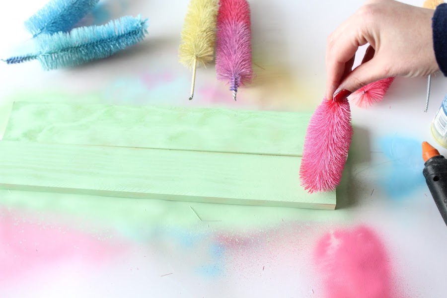 3 Paso: Pegar los trocitos de cepillo en una madera, lo mejor para pegarlo es la silicona caliente.