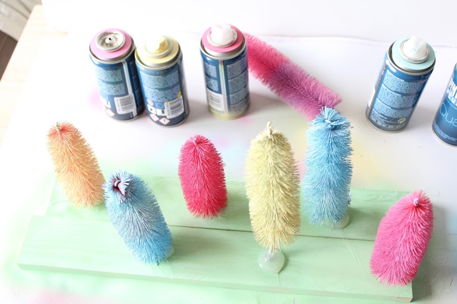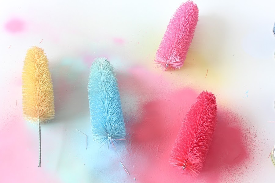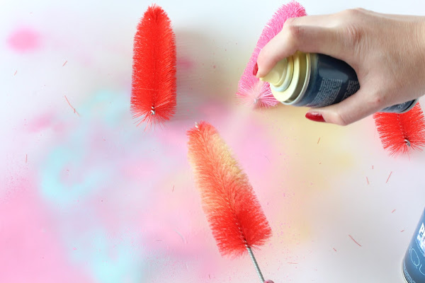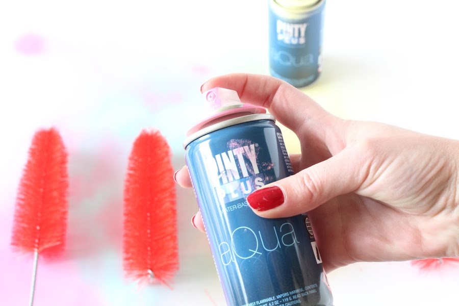 2 Paso: Pintar los trozos de cepillo. Puede ser del mismo color o de colores diferentes, en cuanto a pintura os recomiendo, pintura en spray Aqua de Novasol Spray, ya que sera más fácil pintar los cepillos.