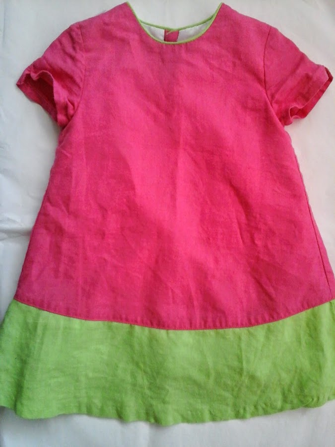 Digamos que está hecho a ojo y que he ido modificando según se lo iba probando...lo que conlleva descoser y paciencia. Vamos con los pasos: 1._ Elegir un vestido para sacar el molde o patrón. En mi caso elegí éste que os muestro por que lo quería con dos telas. Si lo haces con una sola tela pues más fácil!!