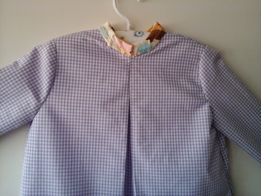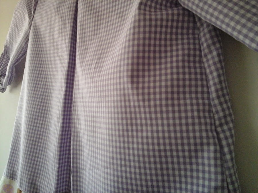 7.- Rematar la parte trasera haciendo un dobladillo en cada mitad y coloca a un lado los botones y al otro los ojales. También puedes hacerlo con snaps, clics, lazos... 8.- En el cuello coloqué un bies de la misma tela de bailarinas pero puedes hacerlo con cualquier bies o vivo. Y éste es mi resultado: